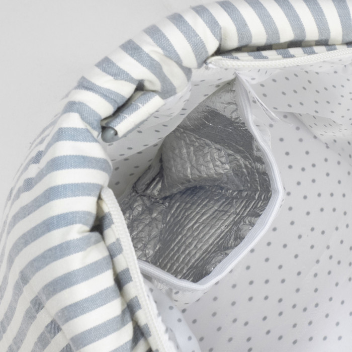 Bolso cambiador Praliné Rayas Matcha para silla de paseo que incluye cambiador para bebe. Bolsa canastilla muy ligera, resistente y de gran capacidad para llevar todo lo necesario para el paseo del bebe. Tiene multiples bolsillos para poder tener todo ordenado. En el interior incopora un bolsillo plastificado para la ropa húmeda, un bolsillo térmico para biberones y dos bolsillos para lo que necesites tener más a mano. La bolsa tiene un sistema universal de fijación, con 2 asas cortas ajustables que facilita la colocación en cualquier modelo de silla de paseo. También incorpora una asa larga para poder colgarla en el hombro y asas cortas para cogerla con la mano. Gran calidad y mucho estilo. Fabricada con un tratamiento water resistant, de fácil limpieza a mano o a máquina a 30 °C. Walking Mum protege a tu bebé utilizando los mejores tejidos, libres de colorantes azoicos y sustancias nocivas para la salud. Nuestra colección Walking Mum está diseñada con un particular sello de estilo urbano y moderno que no pasa desapercibido, para vestir diferente los paseos con tu bebé. Las bolsas de maternidad de esta línea son más sport y prácticas, especialmente pensadas en mamás y papás modernos que aprecian los diseños más actuales y en tendencia sin dejar de lado la calidad y la funcionalidad de los accesorios que complementan y hacen más cómodos todos los paseos con sus bebés. Especificaciones: Materiales: 65% algodón/35% poliéster con tratamiento water resistant. Medidas: 44x29x12 cm.