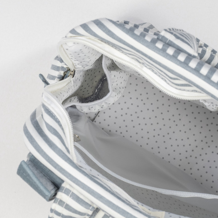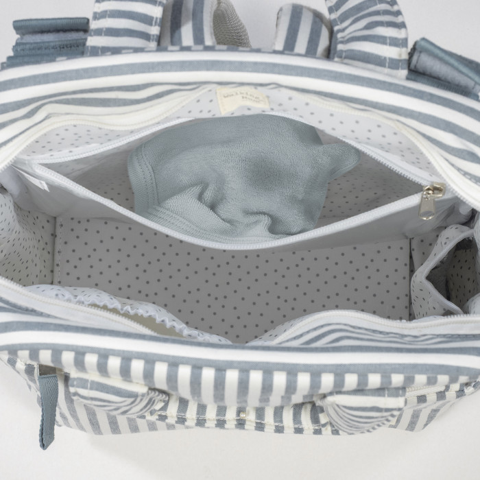 Una bolsa canastilla y mochila al mismo tiempo, ideal para llevar tus cosas y las de tu bebé, con mucho estilo, a todos sus paseos. La mochila Praliné Rayas Matcha está fabricada con un tratamiento water resistant. La mochila para silla de paseo es un modelo multifunción muy ligero, resistente y de gran capacidad para llevar todo lo necesario en el paseo del bebe. Su esquema ofrece 3 bolsillos exteriores y 4 interiores para poder tener todo ordenado y a mano. En el exterior tiene un bolsillo frontal con cierre de cremallera y dos bolsillos laterales para biberones o botellas. En el interior incopora un bolsillo plastificado para la ropa húmeda, un bolsillo térmico para biberones y dos bolsillos para lo que necesites tener más a mano. Incluye un cambiador a juego con el bolso de maternidad. El bolso incluye 2 asas cortas ajustables que facilitan la colocación en cualquier modelo de silla de paseo, asas de mano y correas acolchadas para colgar en los hombros hacia la espalda, sin generar molestias por el peso. Gran calidad y mucho estilo. Fabricada con un tratamiento water resistant, de fácil limpieza a mano o a máquina a 30 °C. Walking Mum protege a tu bebé utilizando los mejores tejidos, libres de colorantes azoicos y sustancias nocivas para la salud. Nuestra colección Walking Mum guarda toda la calidad de la marca Pasito a Pasito pero con un particular sello de estilo urbano y moderno que no pasa desapercibido, para vestir diferente los paseos con tu bebé. Las bolsas de maternidad de esta línea son más sport y prácticas, especialmente pensadas en mamás y papás modernos que aprecian los diseños más actuales y en tendencia sin dejar de lado la calidad y la funcionalidad de los accesorios que complementan y hacen más cómodos todos los paseos con sus bebés. Especificaciones: Materiales: 65% algodón/35% poliéster con tratamiento waterpfoof. Medidas: 37X28X13 cm.