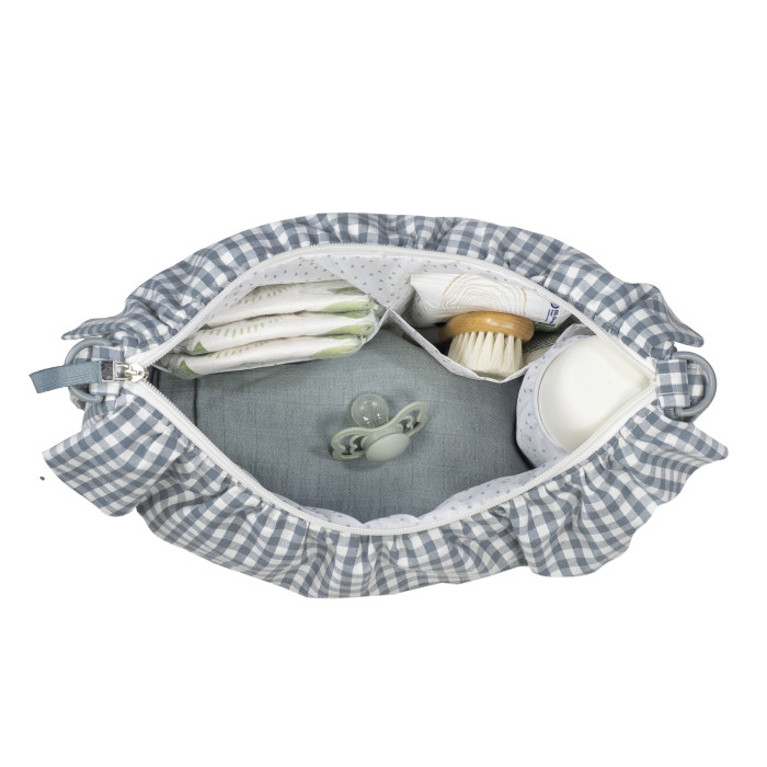 Funcional, ligera y con mucho estilo: la bolsa ideal para paseos con tu bebé. La bolsa tipo góndola con correa cruzada de la colección Praliné Vichy Matcha de Walking Mum es la opción perfecta para quienes buscan una bolsa maternal ligera, compacta y con gran capacidad de organización. Su diseño curvado tipo góndola, es perfecto para llevar como bolsa bandolera. Aporta un toque moderno ideal para llevar tanto colgada al hombro como sujeta al carrito del bebé. Fabricada con tratamiento water resistant, esta bolsa es resistente, práctica y fácil de limpiar. Incluye enganches universales para carrito de bebé. El interior cuenta con 3 bolsillos: 1 bolsillo lateral térmico, ideal para biberones o botellas y 2 bolsillos adicionales para organizar pañales, toallitas, llaves o móvil. Cierre con cremallera superior para mayor seguridad. Correa larga ajustable para usar como bolso cruzado o al hombro. Una opción versátil y con mucho estilo para el día a día. La bolsa crossbody Gala Cerise de Walking Mum combina diseño, practicidad y comodidad en una pieza única. De fácil limpieza a mano o a máquina a 30 °C. Walking Mum protege a tu bebé utilizando los mejores tejidos, libres de colorantes azoicos y sustancias nocivas para la salud. Nuestra colección Walking Mum está diseñada con un particular sello de estilo urbano y moderno que no pasa desapercibido, para vestir diferente los paseos con tu bebé. Las bolsas de maternidad de esta línea son más sport y prácticas, especialmente pensadas en mamás y papás modernos que aprecian los diseños más actuales y en tendencia sin dejar de lado la calidad y la funcionalidad de los accesorios que complementan y hacen más cómodos todos los paseos con sus bebés. Especificaciones: Materiales: 65% algodón/35% poliéster con tratamiento waterpfoof. Medidas: 32x22x12 cm.