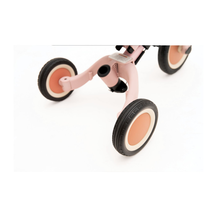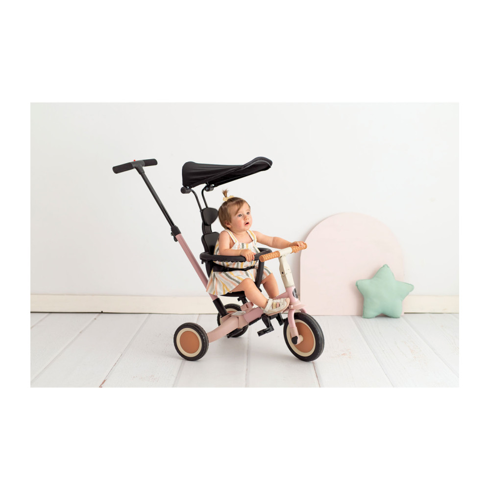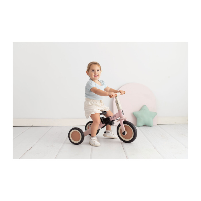 • Provisto de un sencillo sistema que permite transformar la bicicleta sin herramientas y ajustarla a la edad del niño.