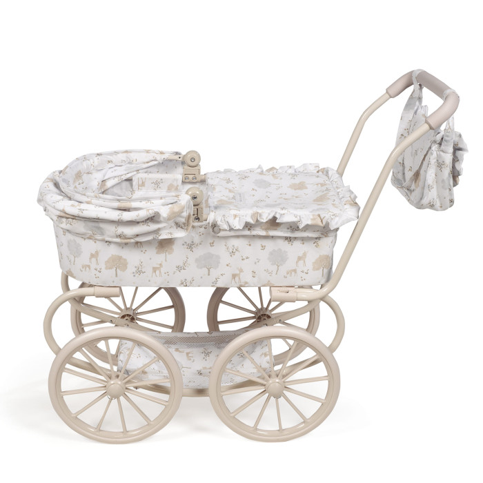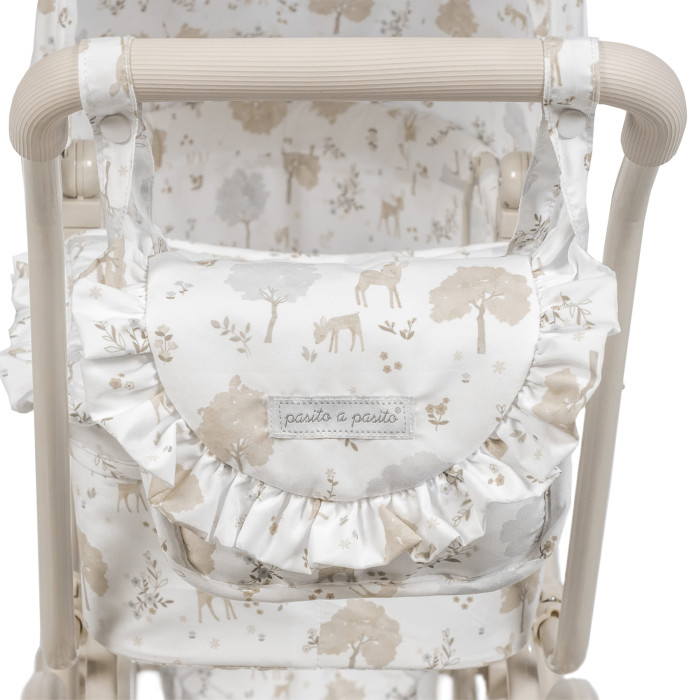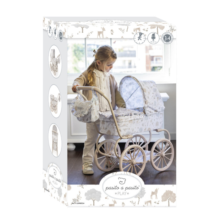 Cuco clásico de muñecas Pasito a Pasito Colección Nara – ¡Paseos de Ensueño para tus Muñecas! Sumérgete en la elegancia y la tradición con el magnífico cochecito clásico de muñecas de la exclusiva colección Nara de Pasito a Pasito. Este encantador carrito, con su diseño vintage y detalles exquisitos, es el juguete perfecto para niños y niñas de 3 a 4 años que deseen pasear a sus muñecas con un toque de distinción. Diseño clásico y romántico: inspirado en los cochecitos de bebé de antaño, presenta una estructura robusta con ruedas grandes de estilo tradicional y un capazo espacioso, evocando la nostalgia y la belleza atemporal. Estampado «Nara» emblemático: decorado con el delicado y dulce estampado de cervatillos de la colección Nara de Pasito a Pasito, en tonos beige, que aporta un aire de sofisticación y ternura. Detalles premium: acabados cuidados al máximo, con volantes y una confección impecable que resaltan la calidad y el mimo de la marca Pasito a Pasito. Altura ideal del manillar: con un manillar a 68 cm de altura, este cochecito está perfectamente adaptado para la estatura de los pequeños de 3 a 4 años, asegurando un agarre cómodo y una experiencia de juego natural. Amplio espacio para muñecas: sus generosas dimensiones de 74x41x68h cm lo hacen ideal para muñecas de 30 a 42 cm, permitiendo que los «bebés» descansen y viajen con total confort. Incluye bolsa de paseo a juego: el cochecito viene acompañado de una adorable bolsa de paseo con el mismo estampado Nara, perfecta para que los niños lleven los accesorios de su muñeca o sus pequeños tesoros. Estructura robusta y estable: diseñado para resistir el juego diario, proporcionando estabilidad y seguridad en cada paseo. Cumple Normativa Europea EN-71: como todos los juguetes de Pasito a Pasito, este cochecito ha sido fabricado siguiendo los más altos estándares de seguridad y ha pasado las estrictas pruebas de la normativa europea EN-71, garantizando un juego seguro y sin preocupaciones. Este Cochecito Clásico de Muñecas no es solo un juguete; es una invitación al juego de rol, estimulando la imaginación, la empatía y las habilidades sociales de los niños mientras imitan a los adultos en sus tareas de cuidado. Un regalo memorable que encantará a cualquier pequeño/a amante de las muñecas. ¡Permite que la magia de la infancia cobre vida con el elegante Cochecito Clásico de Muñecas Pasito a Pasito Colección Nara!