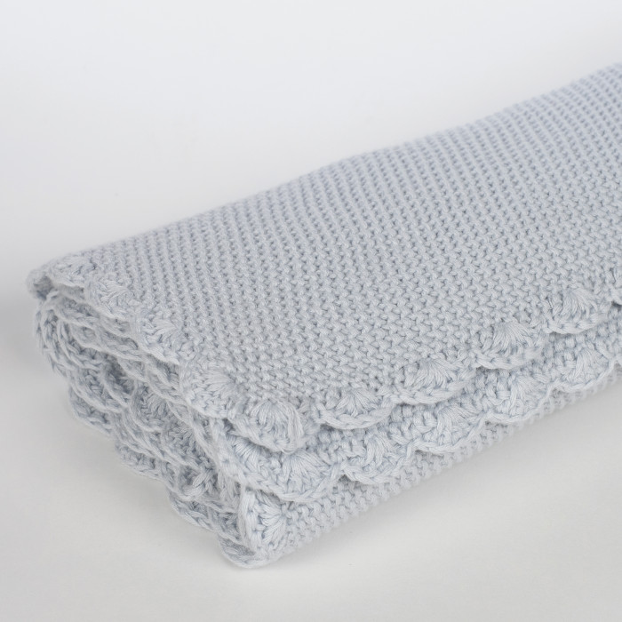 Manta Tricot azul de Pasito a Pasito, elegancia y suavidad para tu bebé. Envuelve a tu bebé en la suavidad y calidez de la manta Tricot de Pasito a Pasito, confeccionada en algodón 100% con un delicado punto de arroz y elegante acabado de crochet en ondas. Ideal para el carrito, la cuna o los paseos, su diseño atemporal y colores suaves combinan con cualquier estilo. Material tricot 100% algodón. Incluye bolsa de hilo con logo, ideal para regalar. Gran calidad y mucho estilo. Todos nuestros productos están fabricados conforme a las más exigentes normativas europeas. Certificación SVHC / EN-14362 Azo free libre de sustancias nocivas. De fácil limpieza, se recomienda lavar a máquina a 30º. Los productos para bebé de Pasito a Pasito cuentan con un diseño muy diferente a todas las demás. Sus colecciones se caracterizan por el trabajo al detallada, pensadas siempre desde un punto de vista práctico. Utilizan materiales de primera calidad para remarcar la elegancia y la armonía en cada una de sus piezas. Nuestros modelos son exclusivos y de estilo inconfundible, pensados en las madres actuales que gozan de buen gusto y que aprecian los detalles tanto como nosotros. Medidas: 75 x 100 cm.