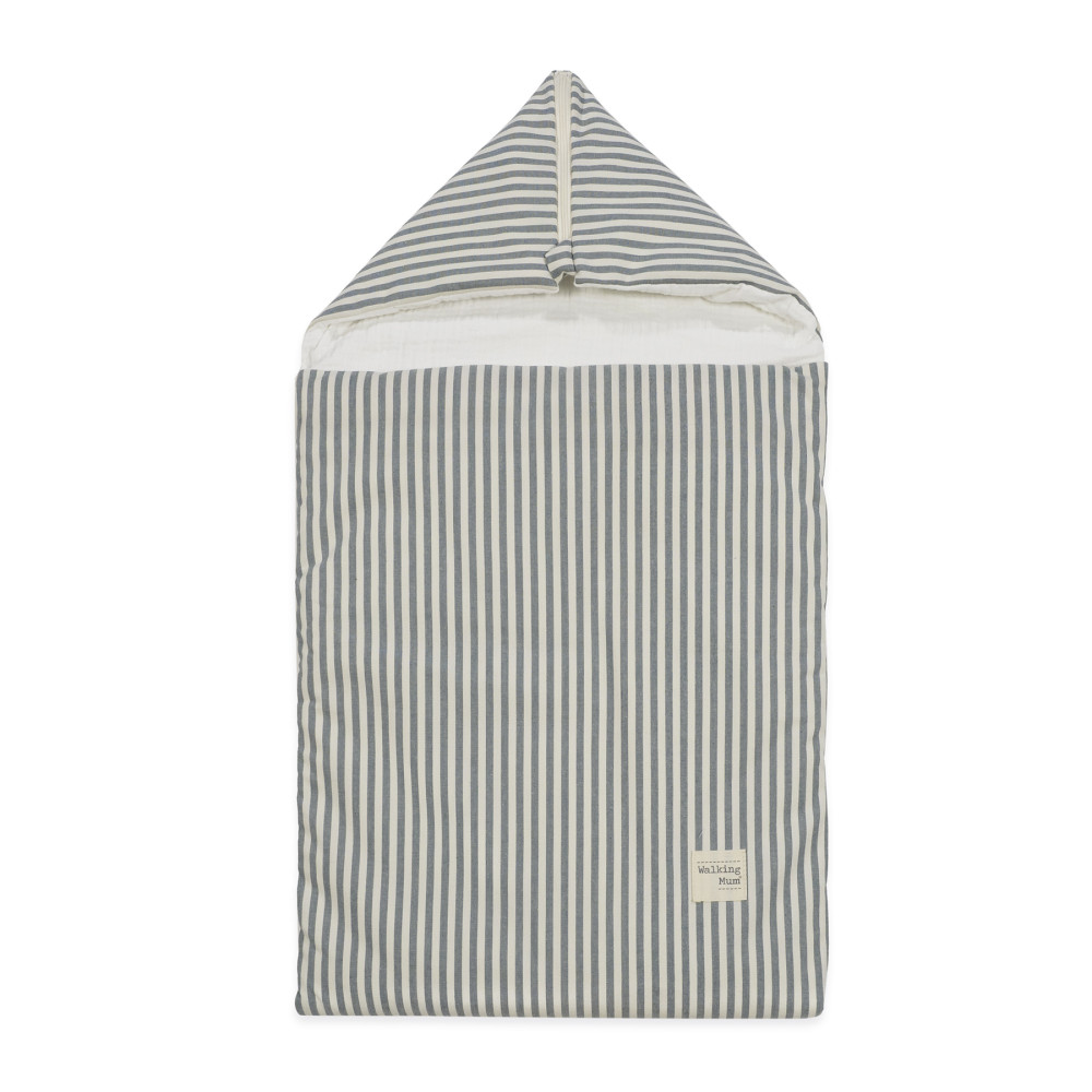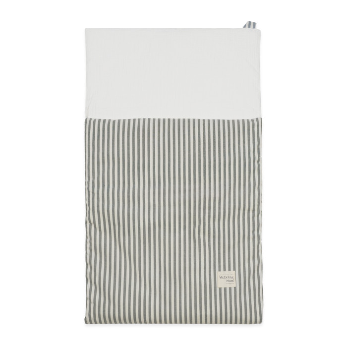 El saco arrullo de verano Praliné Rayas Matcha está pensado para envolver al bebé con suavidad y frescura desde sus primeros días. Su delicado estampado de rayas en tono matcha, natural y sereno, aporta un estilo atemporal que encaja a la perfección en cualquier ambiente. Confeccionado con material exterior resitente y un interior de muselina lisa 100% algodón, de fácil limpieza a mano o a máquina a 30 °C, es ligero, transpirable y especialmente agradable al contacto con la piel del bebé. Su relleno extraíble permite adaptarlo fácilmente a la temperatura, haciéndolo ideal para los meses más cálidos. Gracias a su TOG 1, este arrullo es perfecto para climas templados o de verano, ayudando a mantener una temperatura confortable sin exceso de calor. Su formato es ideal para usar en la cuna, el moisés o para acunar al bebé en brazos con total comodidad. Un básico delicado, práctico y lleno de calma, pensado para acompañar los primeros sueños del bebé. Walking Mum protege a tu bebé utilizando los mejores tejidos, libres de colorantes azoicos y sustancias nocivas para la salud. Nuestra colección Walking Mum está diseñada con un particular sello de estilo urbano y moderno que no pasa desapercibido, para vestir diferente los paseos con tu bebé. Los accesorios de esta línea son más sport y prácticos, especialmente pensados en mamás y papás modernos que aprecian los diseños más actuales y en tendencia sin dejar de lado la calidad y la funcionalidad de los complementos que hacen más cómodos todos los paseos con sus bebés. Especificaciones: Materiales: exterior 65% algodón/35% poliéster - Interior 100% algodón. Medidas 44x78 cm. TOG 1
